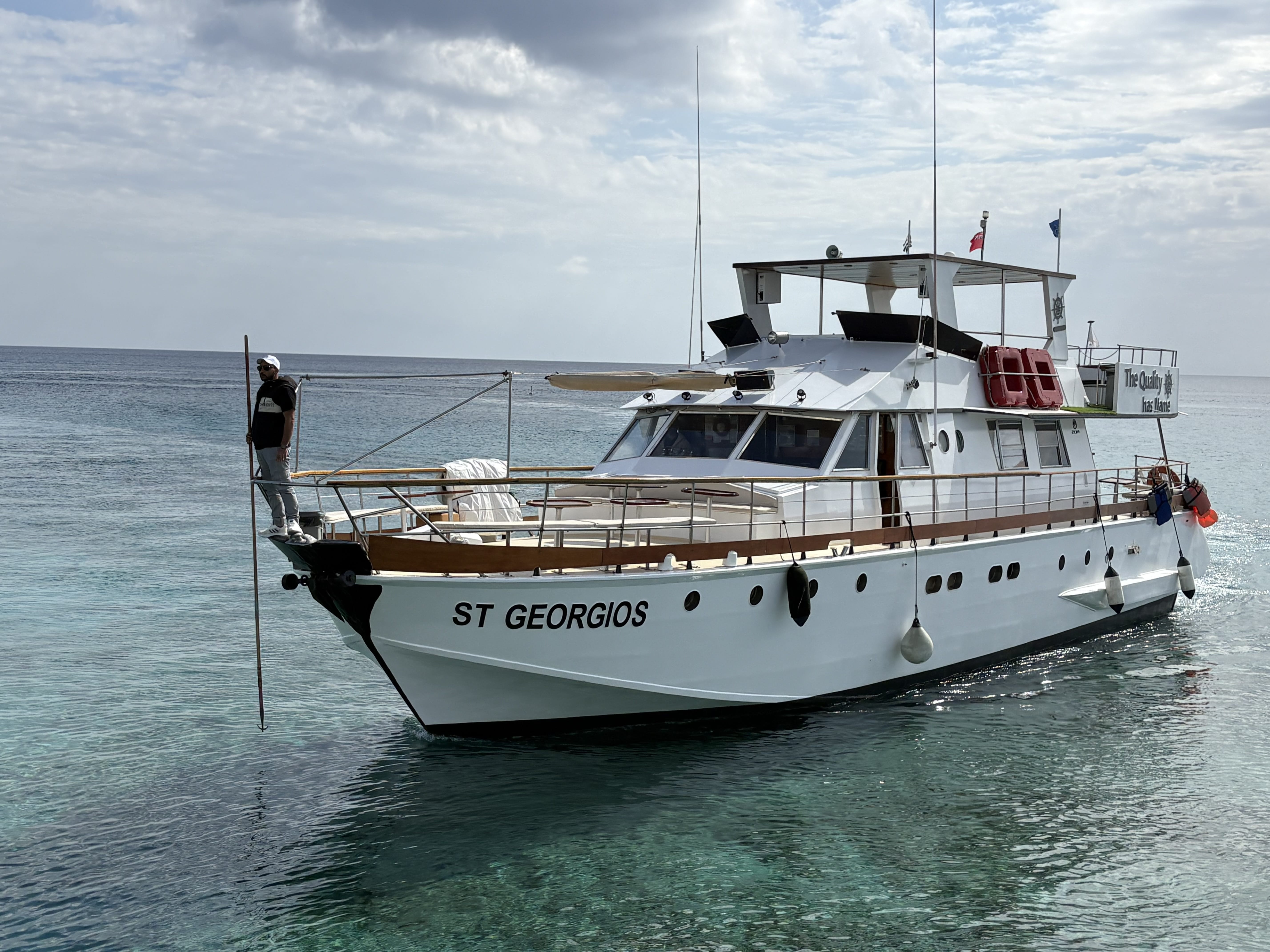 Step aboard St Georgios 1, once the private yacht of President Glafcos Clerides, Cyprus’s most beloved statesman. From the first cast-off, on this adults only departure, sunlight flashes across original period details—polished rails, classic fittings, and the captain’s instruments—while the sea breeze delivers that instant “holiday has begun” feeling.